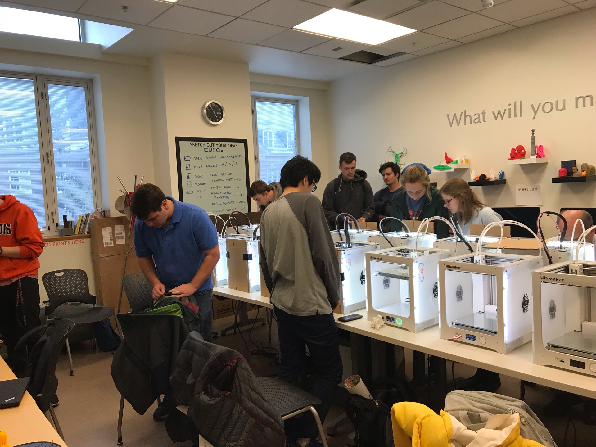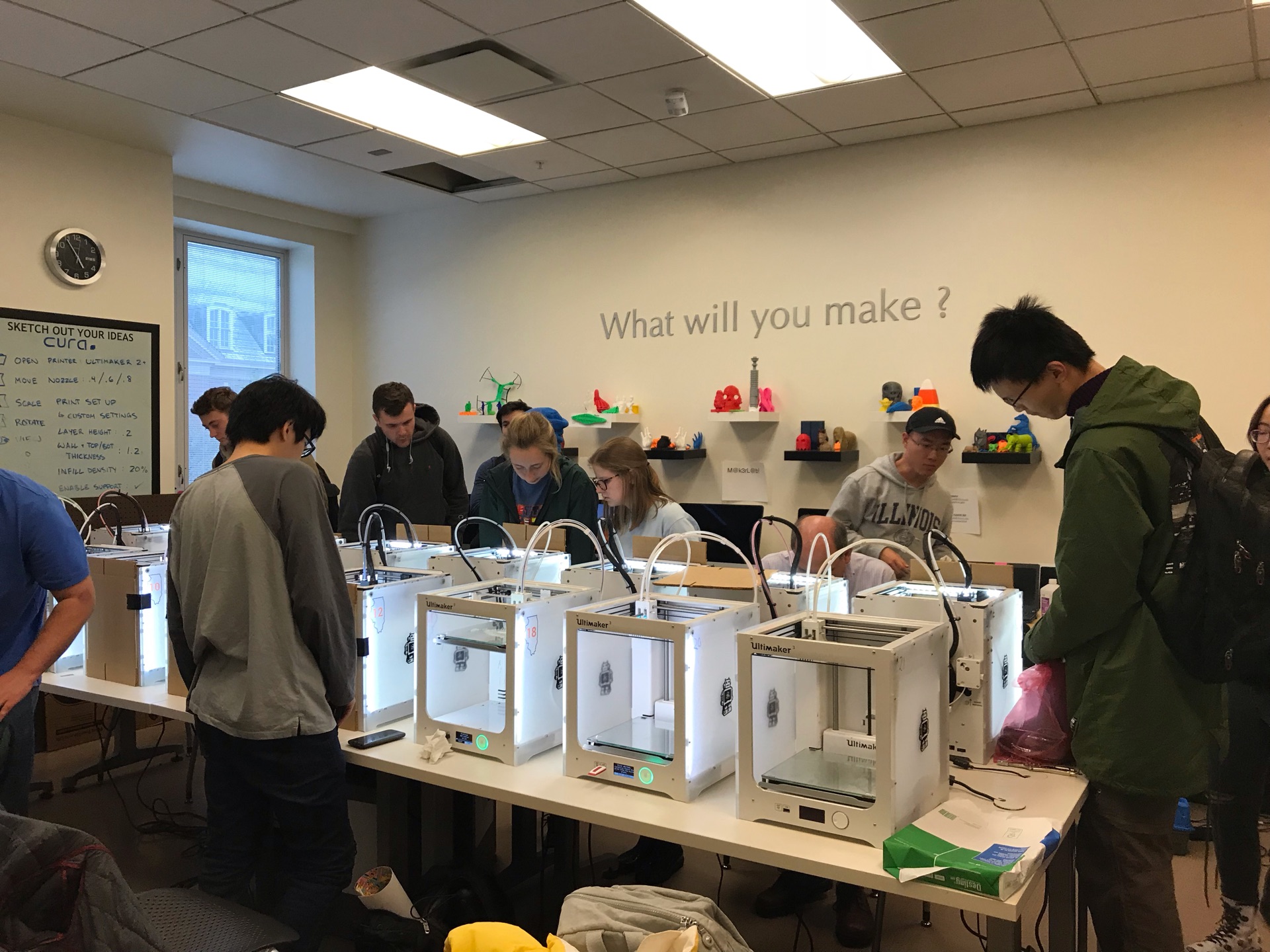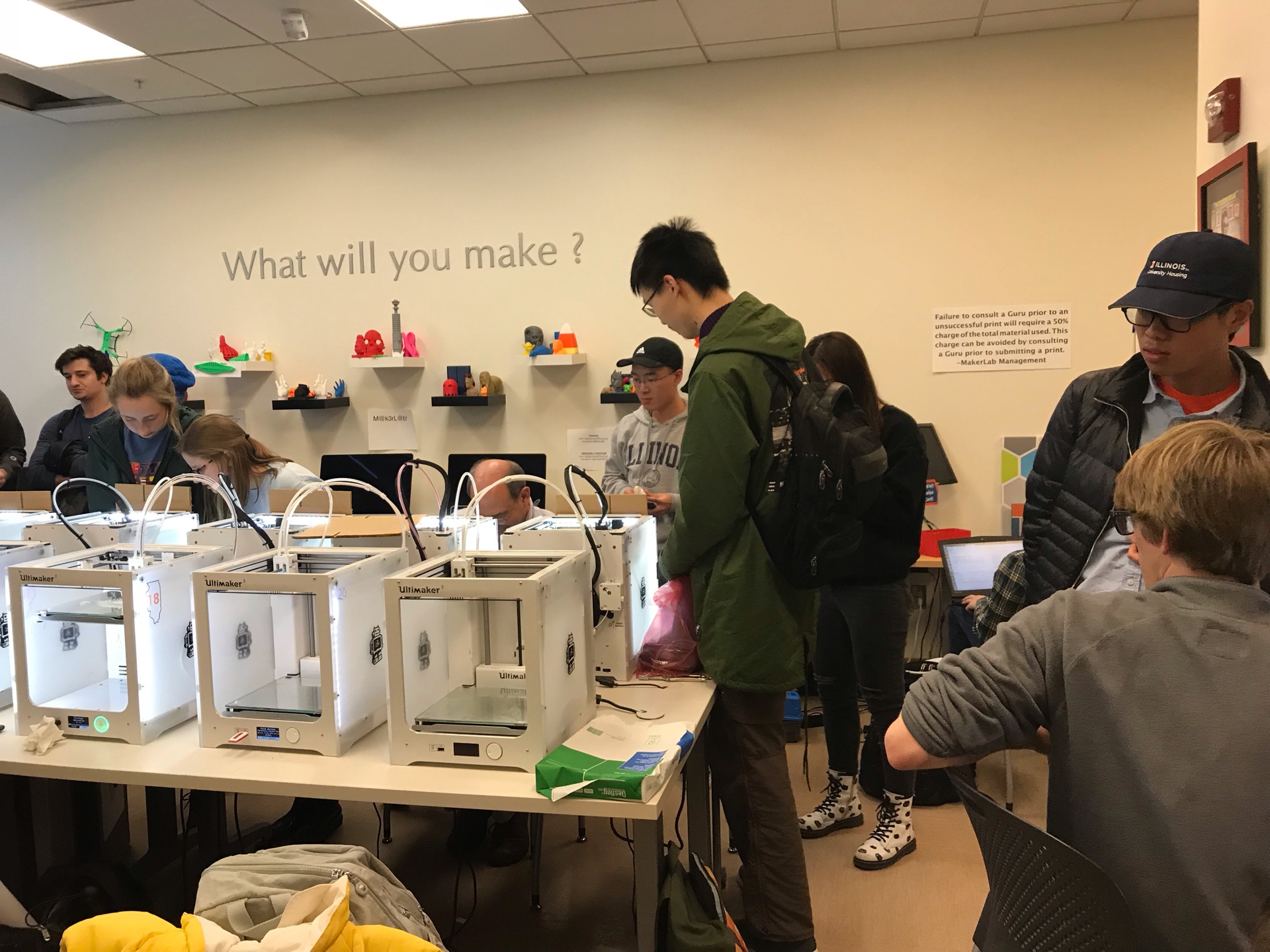 The Illinois MakerLab was proud to host Professor George Gollin and his design class, Physics 398DLP, at the lab recently! Their plan was to print PLA cases for the environmental data loggers that the students are building.